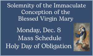 Solemnity of the Immaculate Conception of the Blessed Virgin Mary - Holy Day of Obligation - Monday, Dec. 8 The Solemnity of the Immaculate Conception of the Blessed Virgin Mary celebrates… ... Read More >
