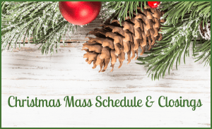 Christmas Mass Schedule and Closings - Christmas Eve Mass - Dec. 24 4 pm* Main Campus Church (Children’s Mass)4 pm Main Campus Parish Center4 pm … ... Read More >