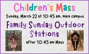 Children’s Mass - Children's MassMarch 22 at 10:45 am Join us as we respond to the question Jesus asks: “Do you believe?” Children… ... Read More >