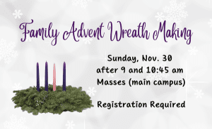 Family Advent Wreath Making - Sunday, Nov. 30 Following the 9 and 10:45 am Masses Parish Center Gym A Joyful Start to Advent It is… ... Read More >