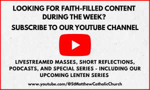 Watch. Listen. Grow in Faith. - Stay connected to our parish wherever you are by subscribing to our YouTube channel. We share faith-filled content designed to… ... Read More >