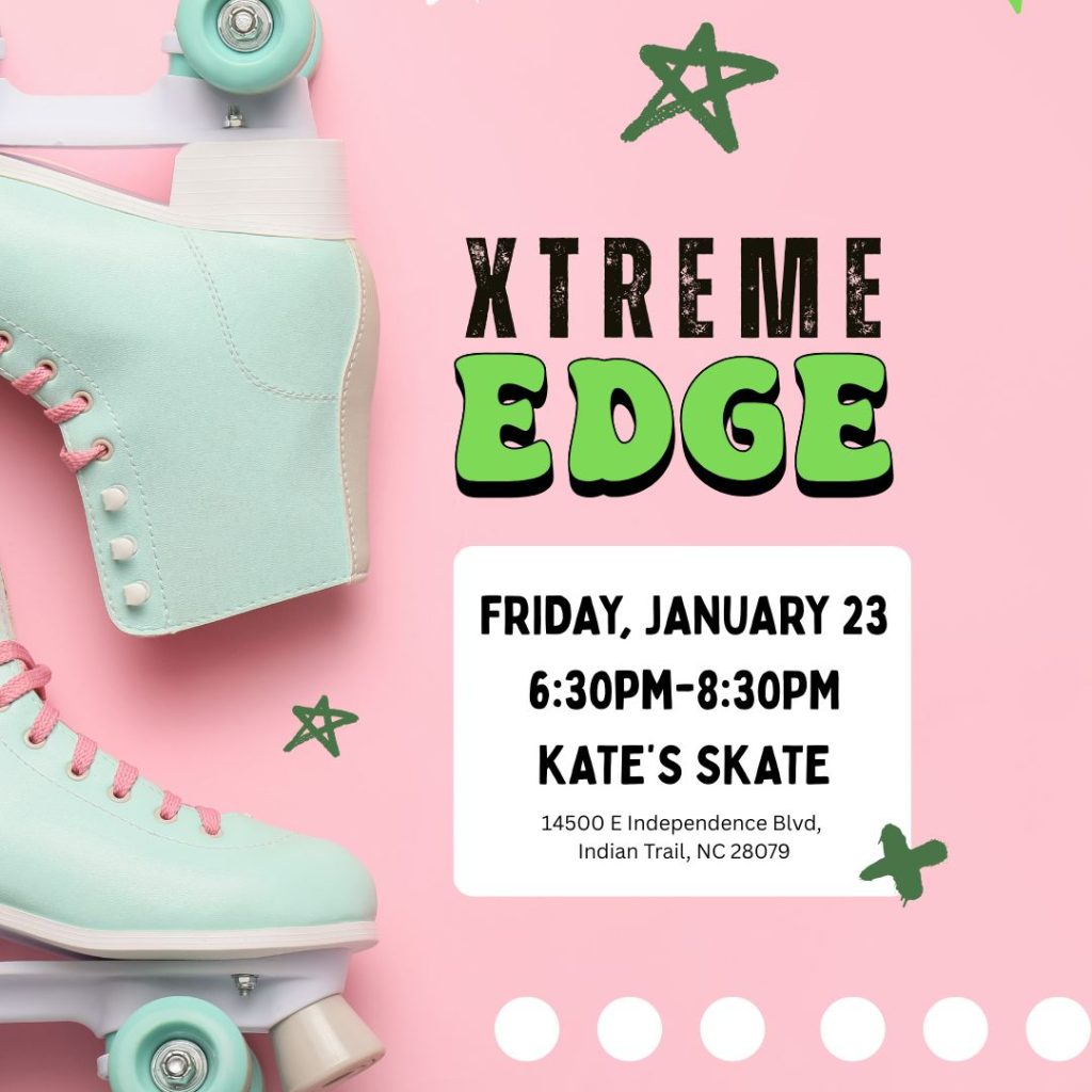 Join our Xtreme EDGE Youth Ministry Program on Friday, January 23 from 6:30-8:30PM at Kate’s Skate – Indian Trail