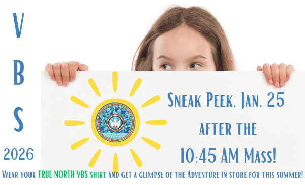 Our theme for next summer will be released after the 10:45 am Children’s Mass on Sunday, Jan. 25. Registration will open on Sunday, Feb. 8 at 3 pm via a link on this webpage!
